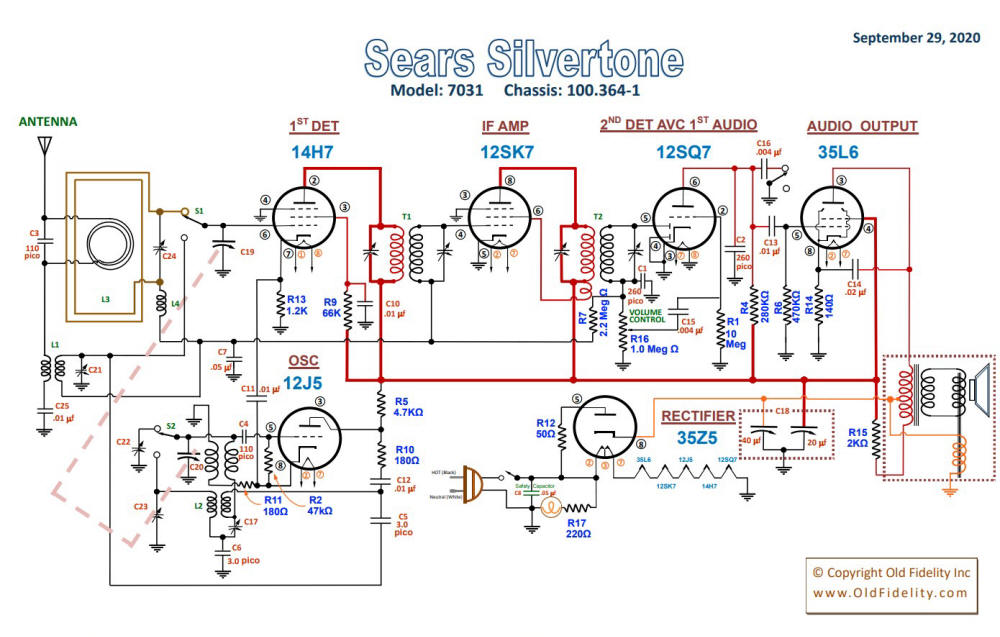 1941 Sears Silvertone Model 7031 working Schematic