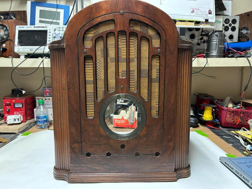 This 1941 RCA radio was in fair condition when I found it. I replaced all the capacitors and most of the resistors during the restoration process. As well the cabinet was completely refinished and new decals added. I added a Bluetooth Module to this radio that sits on top of the radio to play FM stations and music from a smartphone.